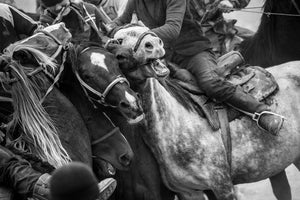 There is one thing you can say about the Asian horsemen, they do ride efficiently. It’s difficult to spot any kind of communication or harmony between the rider and his animal. Participants lead with a heavy hand, recklessly tugging at the reins while foam around horses’ mouth slowly mixes with blood. Apparently the best suited animals for the game of Kok Boru are the ones actively engaging in it. Fast, strong, relentless and kicking - fighting with the same discipline as their riders.